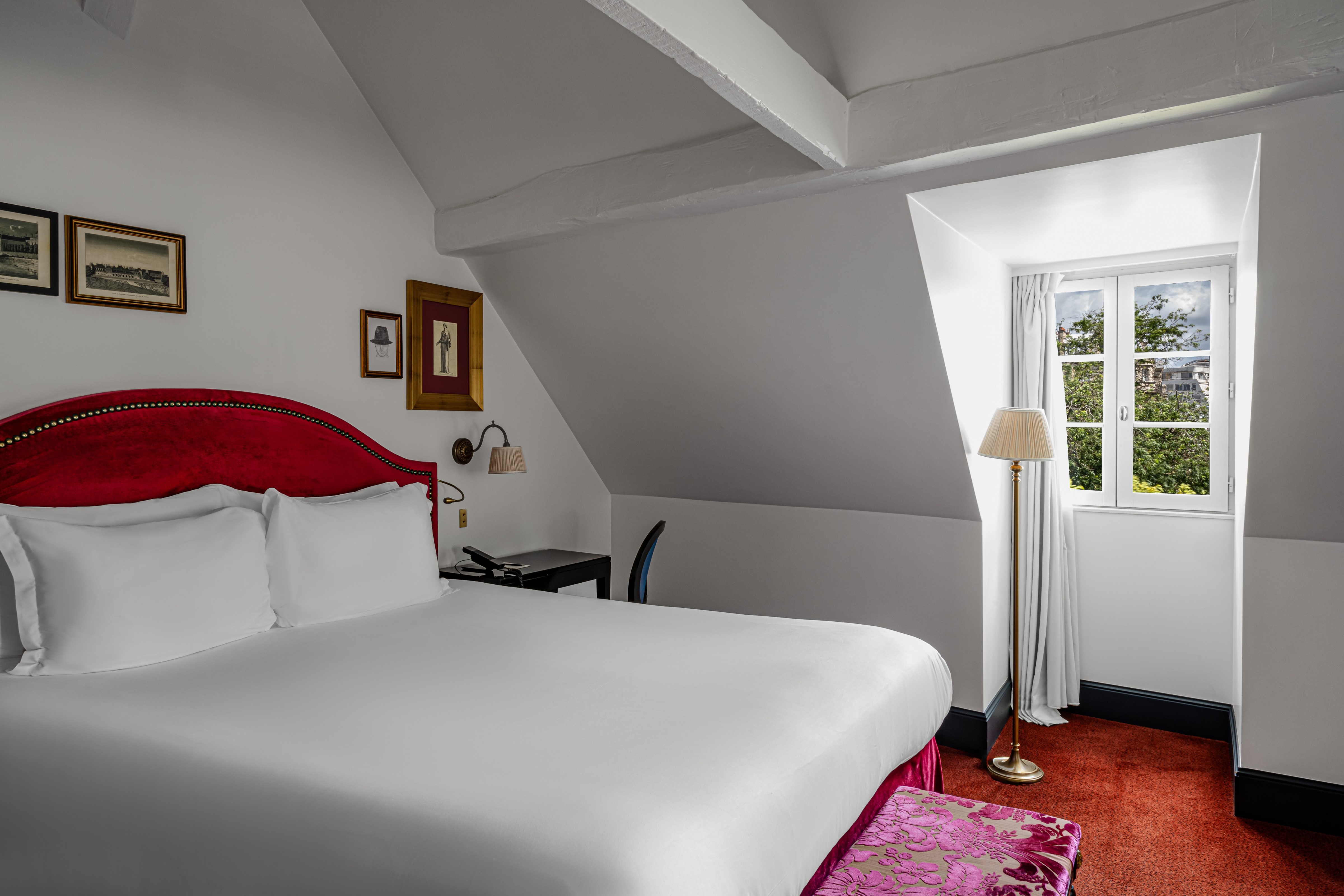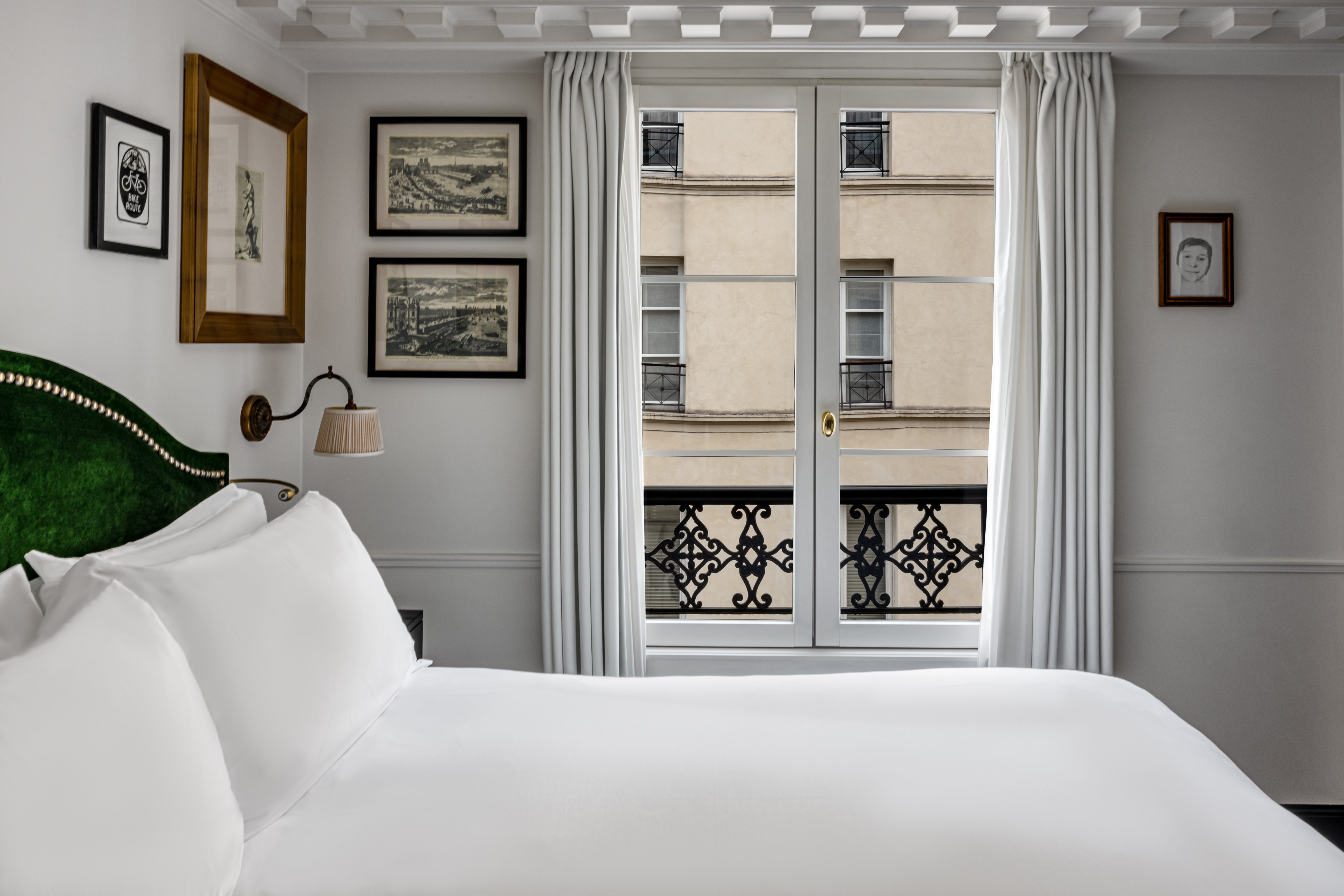 Just inside, our 19 bedrooms are a welcome respite after a day exploring Paris. Each room is unique, echoing the feeling of a Parisian home yet with all the amenities of a hotel. Spacious bedroom await, each a tranquil haven of relaxation, and windows overlooking the bustling streets of Paris.